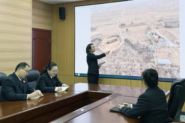 2025年3月,山西省永济市检察院公益诉讼部门干警召开案件研判会,通过航拍影像精准分析线索,守护公益安全。