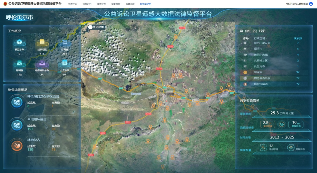 呼伦贝尔市检察院整合高分卫星影像、地理信息等多源数据,构建草原、林地、耕地保护3个“生态智护”模型,通过卫星影像对比、图斑智能识别、数据动态监测,实现对非法开垦、违规占用等破坏生态资源行为的“云端瞭望”与精准预警。过去我们靠群众举报和人员巡查,现在“天眼”让破坏生态的行为无处藏身。