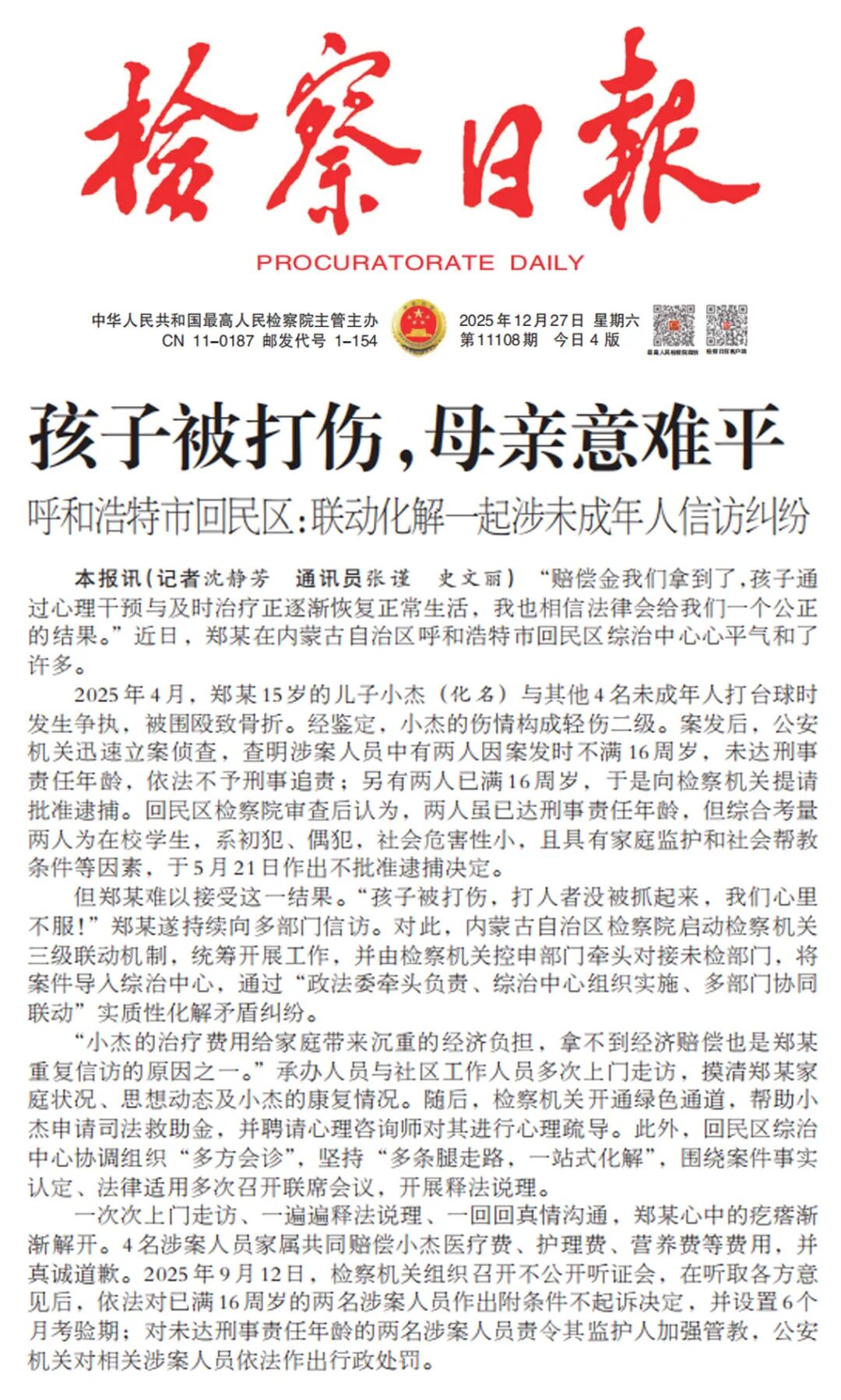 · 12月27日《检察日报》