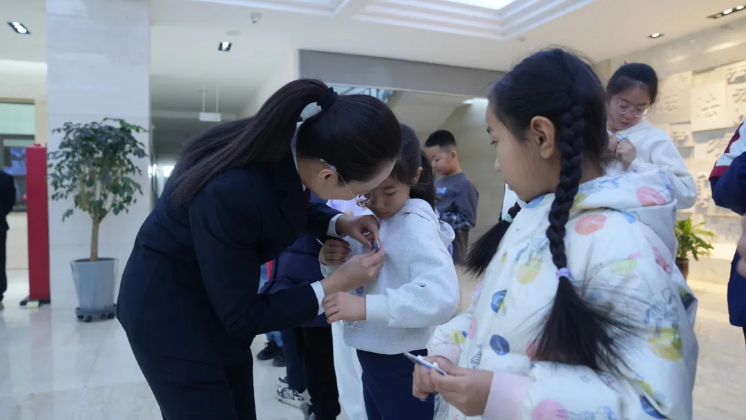 活动的重头戏——聘任仪式如期举行。检察官为第二批小小普法员们郑重佩戴上特制的普法徽章,鼓励大家在今后的生活中继续学习法律知识,积极参与普法宣传活动,成为法治精神的传播者和践行者。戴上徽章的瞬间,小小普法员们的脸上洋溢着自豪与责任的光芒,他们正式成为了普法宣传的小小一员。